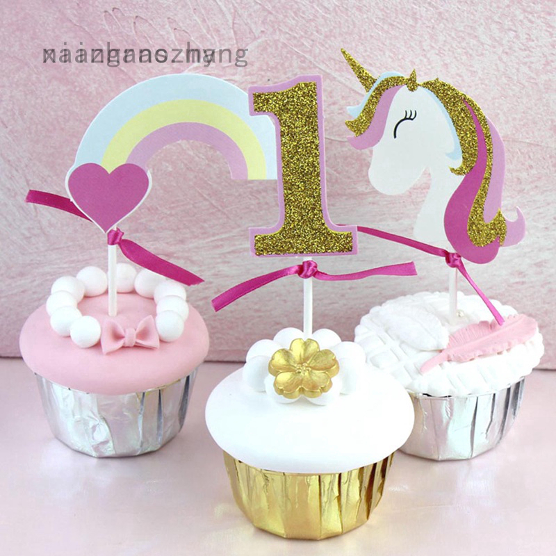 Xiangraozhang 3pcs Unicorn Rainbow Cake Topper Baby 1st Birthday