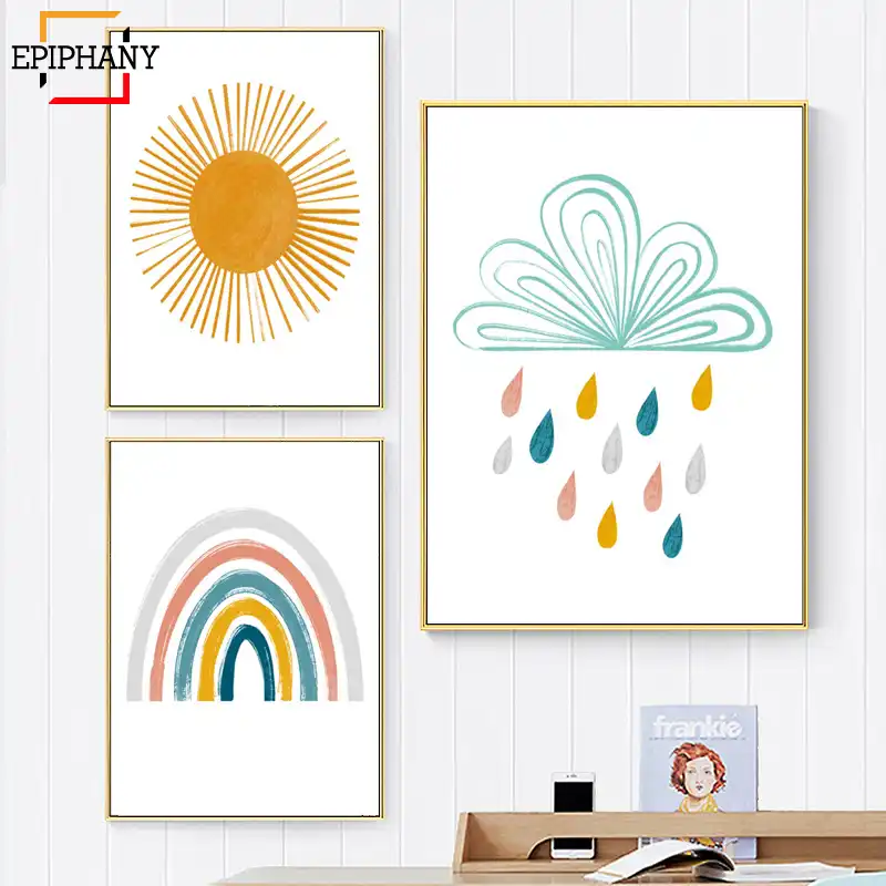 Rainbow Nursery Decor Boho Sunshine Wall Art Print Nordic Canvas