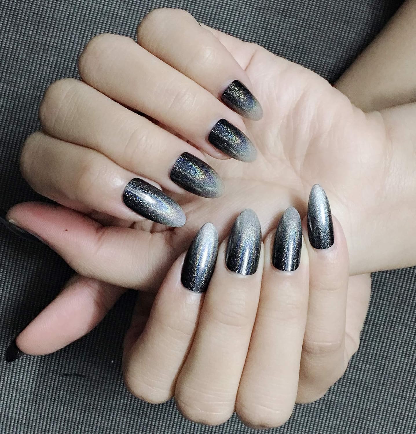 Stiletto False Nails Rainbow Chrome Nails Reflective Mirror Effect Nails Glitter Dark Gradient To Silver Design Artificial Nail Art 24pcs Amazon Ca Beauty