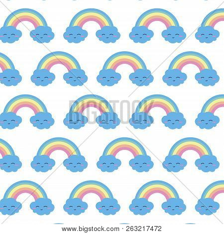 Rainbow Smiles Cute Cartoon Character Kawaii Drawing Vector