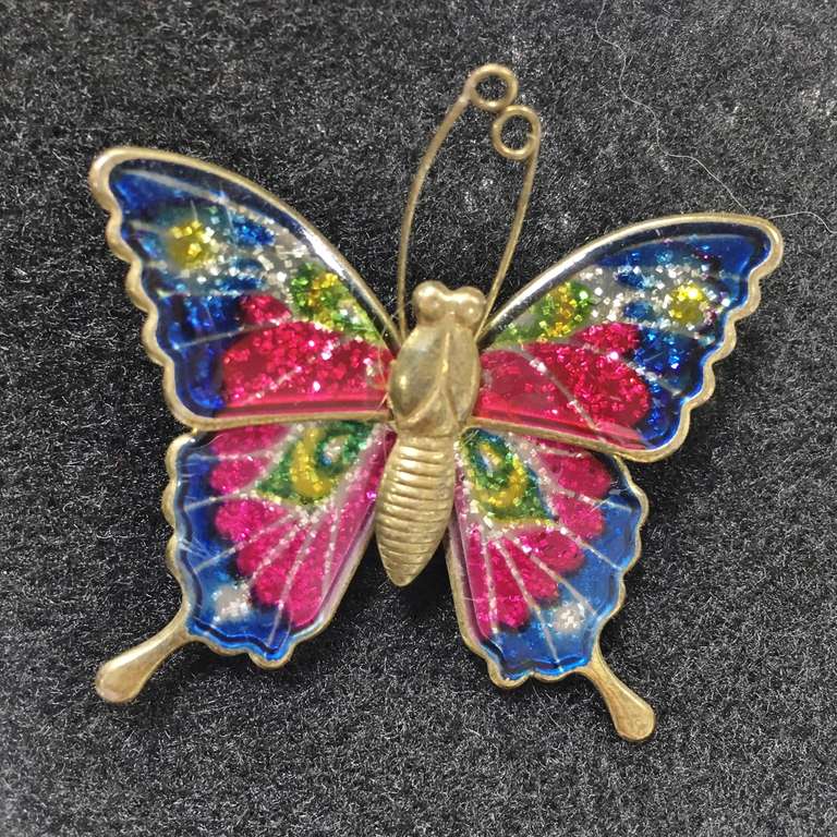 Albrecht Auctions Sparkly Enameled Colorful Rainbow Butterfly Brooch