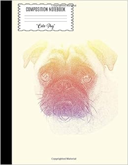 Half Blank Half Lined Composition Notebook Happy Pug Dog Colorful