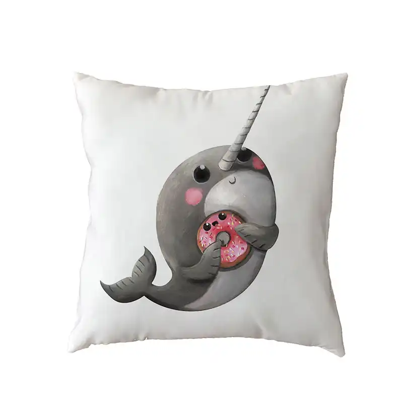 Cute Narwhal Rainbow Sea Cushion Cover Colorful Pink Heart Shaped 43 43cm Newspaper Background Pillow Case Home Bedroom Decorate Aliexpress