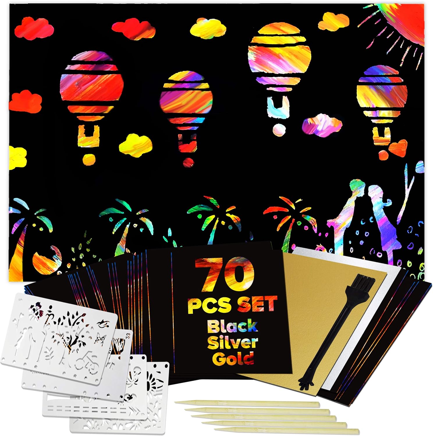 Amazon Com Bago Scratch Art For Kids 70pcs Vibrant Rainbow