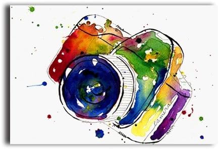 Watercolor Draw Art Colorful Rainbow Camera Painting Decorative