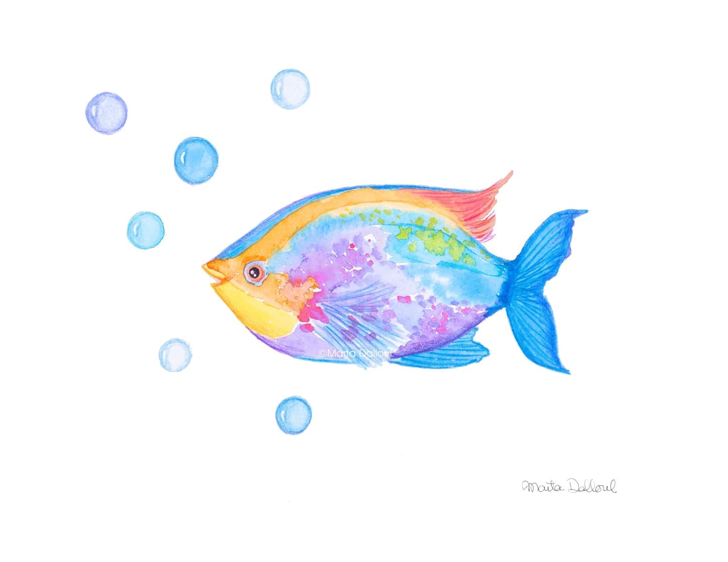 Rainbow Fish No 2 Giclee Print Watercolour Fish Sketch Etsy