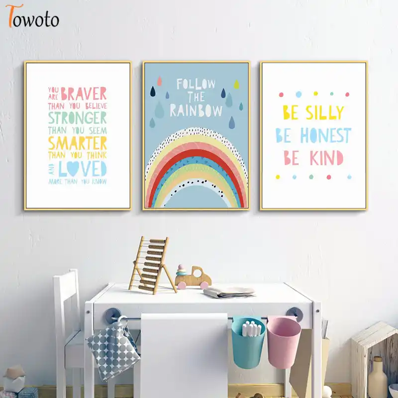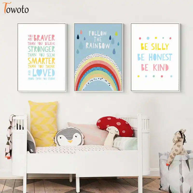 Rainbow Print Cute Quotes Canvas Painting Nursery Wall Art