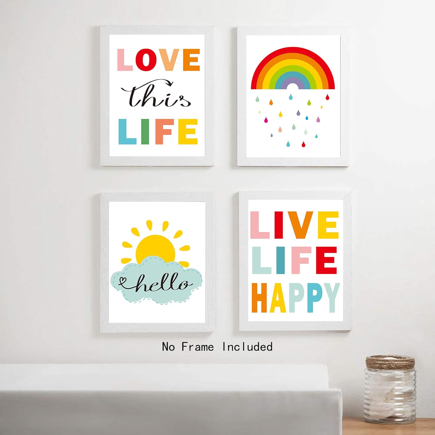 Amazon Com Colorful Rainbow And Sunshine Quotes Art Print Set Of