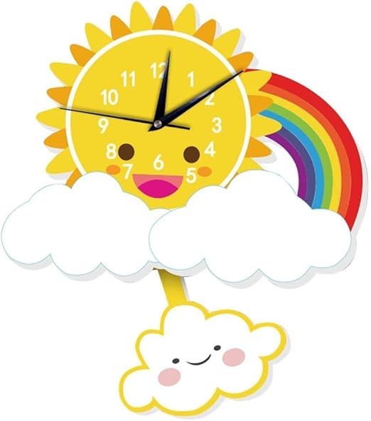 Amazon Com 3d Wall Clock Sun Clouds And Rainbow Wall Clocks Cute
