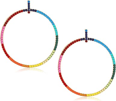Amazon Com Cealxheny Hoop Earrings For Women Rainbow Crystal Hoop