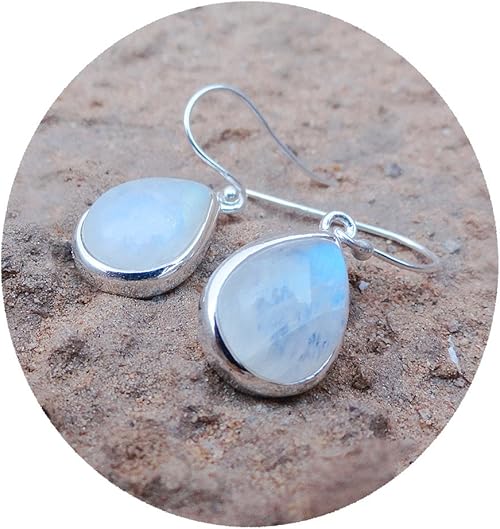 High Quality Rainbow Moonstone Earrings Tear Drop Earrings Blue