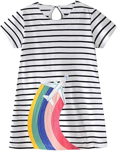 Amlaiworld Toddler Baby Kid Girl Rainbow Embroidery Dress Stripe