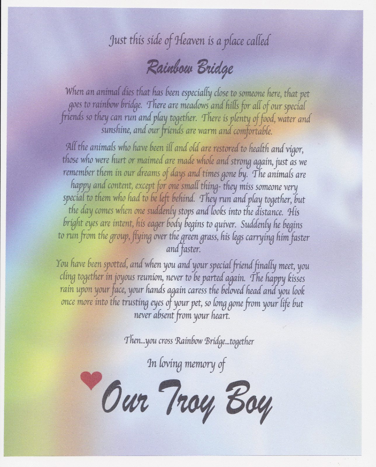 Rainbow Bridge Poem Pet Loss Memorial Dog Cat Horse Bird