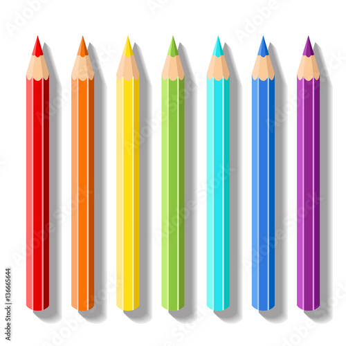 Set Realistic Colored Pencils Pencils Of Rainbow Colors Vector
