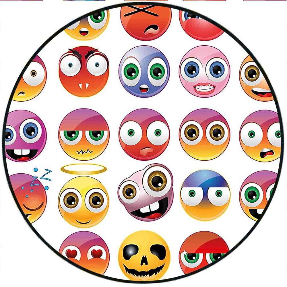 Amazon Com Short Plush Modern Round Carpet Mat Emoji Rainbow
