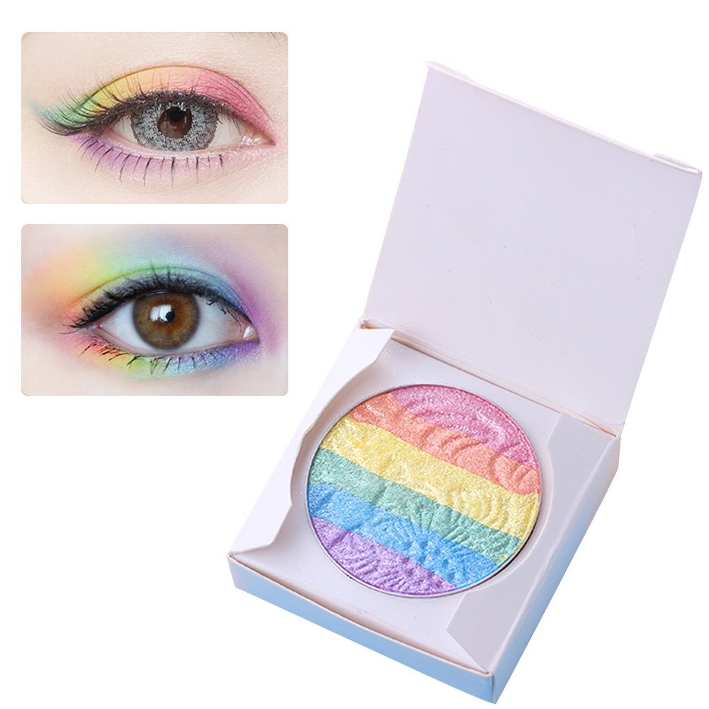 Pretty Rainbow Highlighter Makeup Eyeshadow Palette 6 Colors In 1