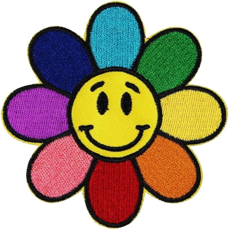 Rainbow Flower Smiley Face Patch Hippie Happy Cute Embroidered