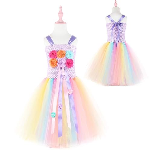 Kids Princess Flowers Rainbow Tutu Dress Baby Long Tail Fairy