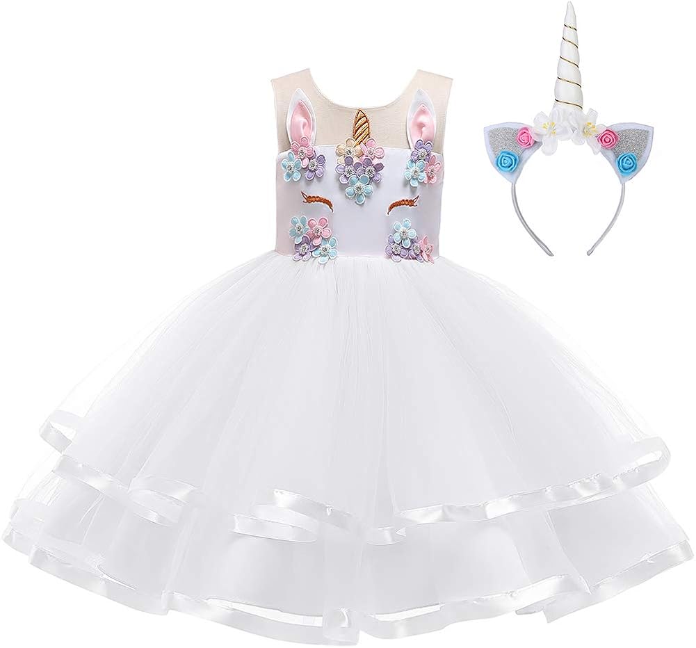 Obeeii Kids Unicorn Rainbow Dress Cosplay Party Costume Fairy