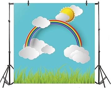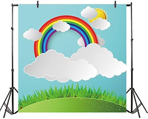 10x10ft Cartoon Clouds Blue Sky Rainbow Kindergarten Green Garden