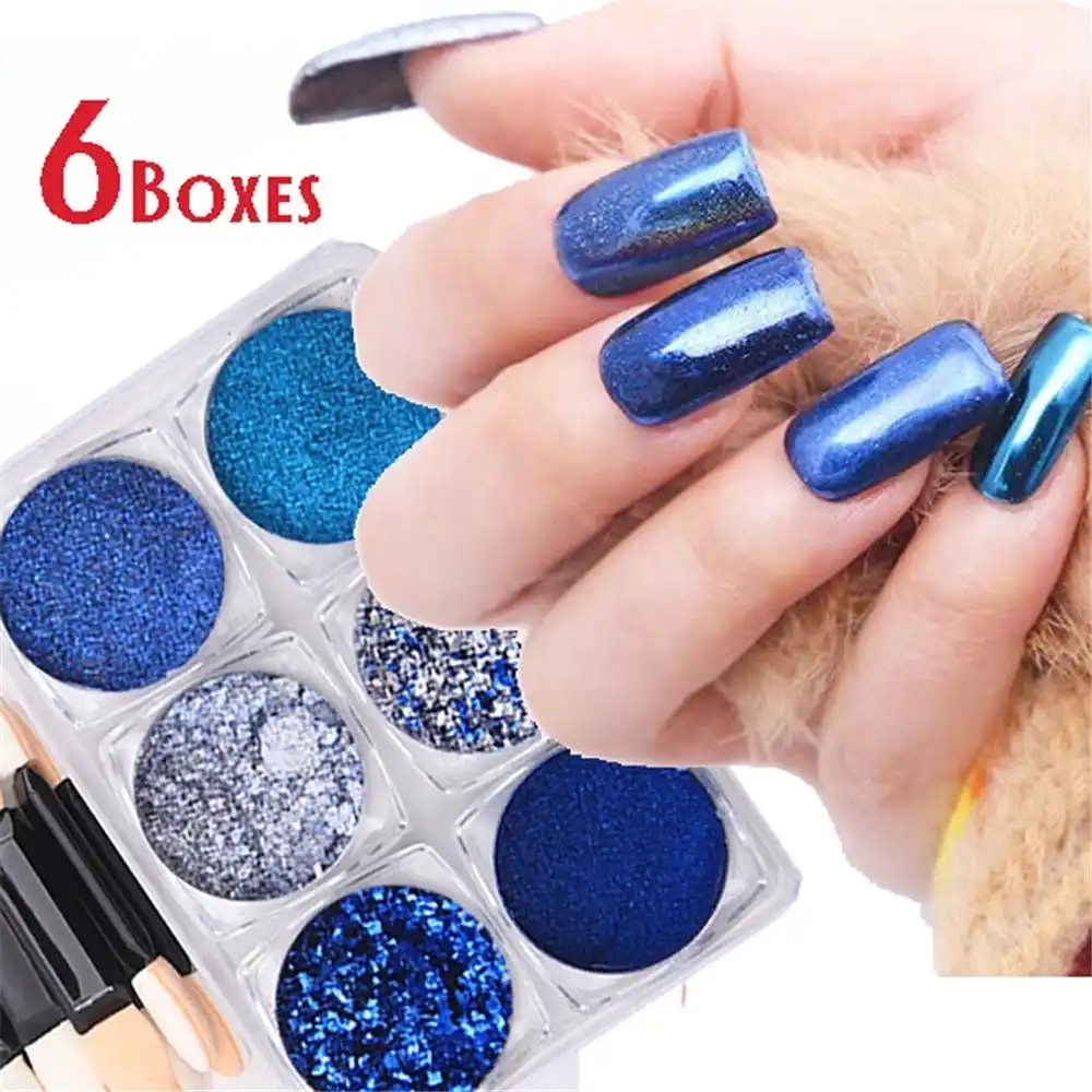 6 Pcs Set Metal Mix Mirror Mermaid Nail Powder Neon Glitter