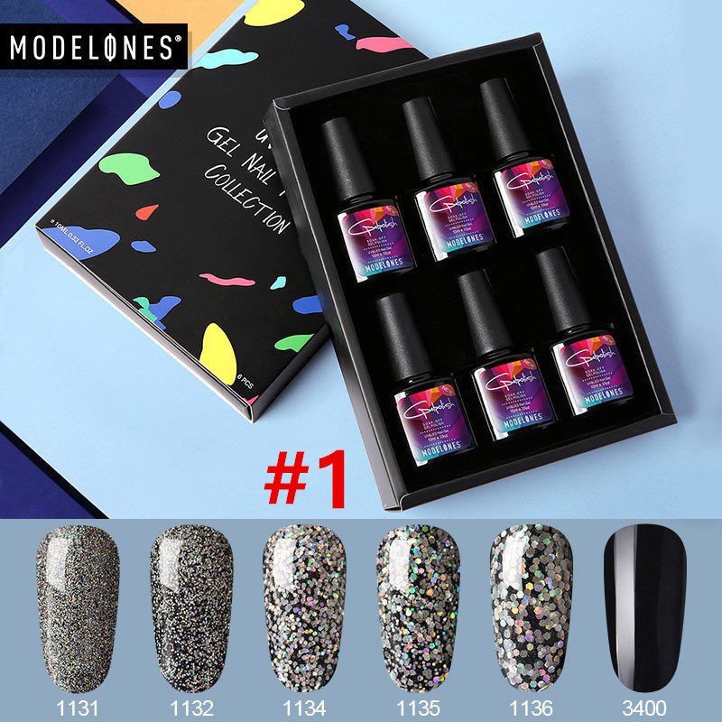 10ml Set 6pcs Uv Led Gel Nail Polish Glitter Rainbow Chameleon