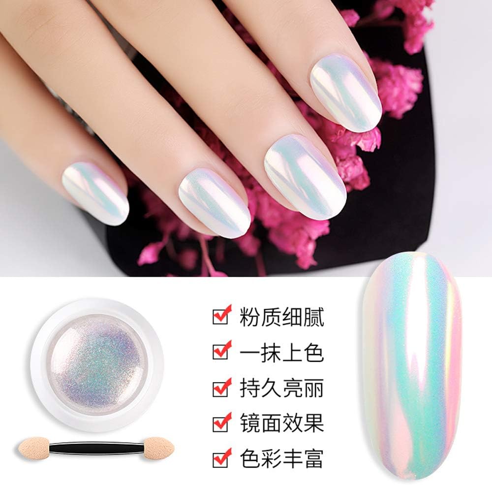 Chrome Pearl Shell Powder Nail Glitter Pigment Rainbow Neon Color