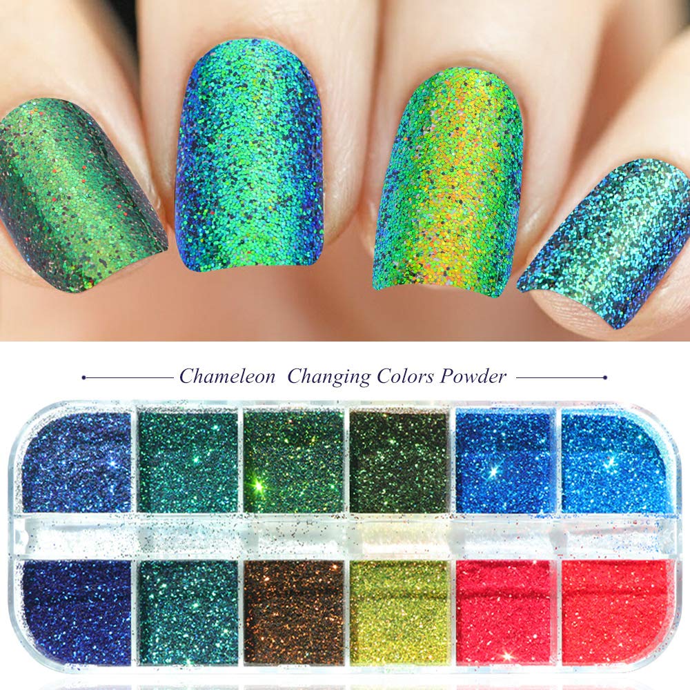 Amazon Com Nail Art Chameleon Laser Rainbow Neon Dust Glitter