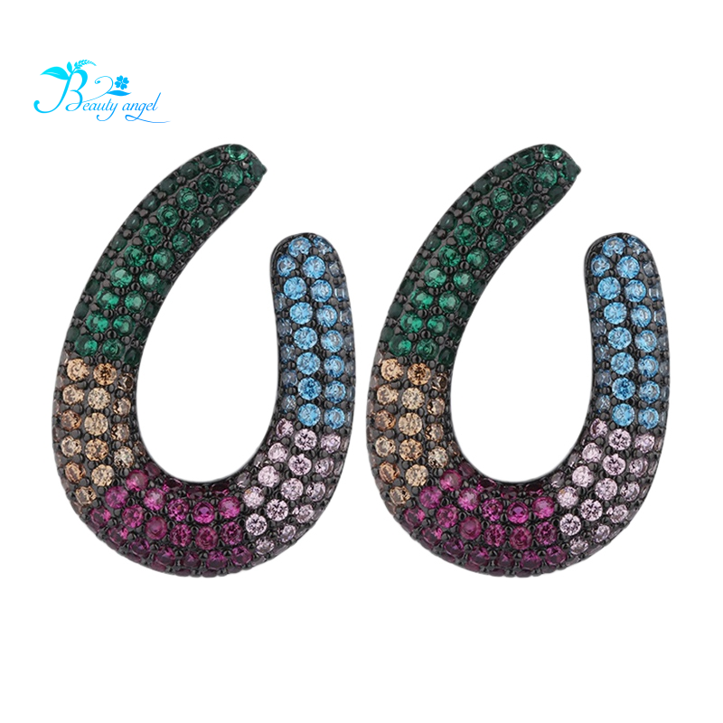 Fashion Rainbow Stud Earrings Jewelry For Women Gold Copper Cz