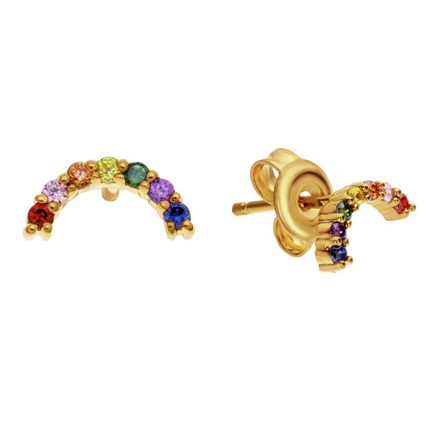 Roxi Women S Gold Cz Rainbow Stud Earring 925 Sterling Silver