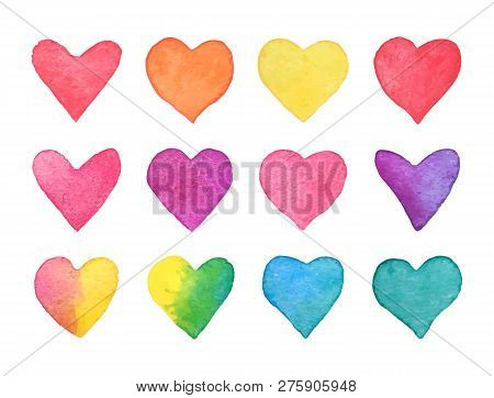 Hand Drawn Watercolor Rainbow Heart Set Stock Illustration