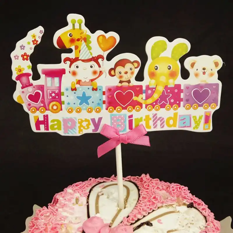 2 Pcs Lot Cute Diy Happy Birthday Rainbow Cake Topper Flags Train