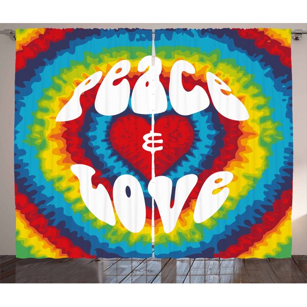 70s Party Curtains 2 Panels Set Peace And Love Groovy Sixties Tie