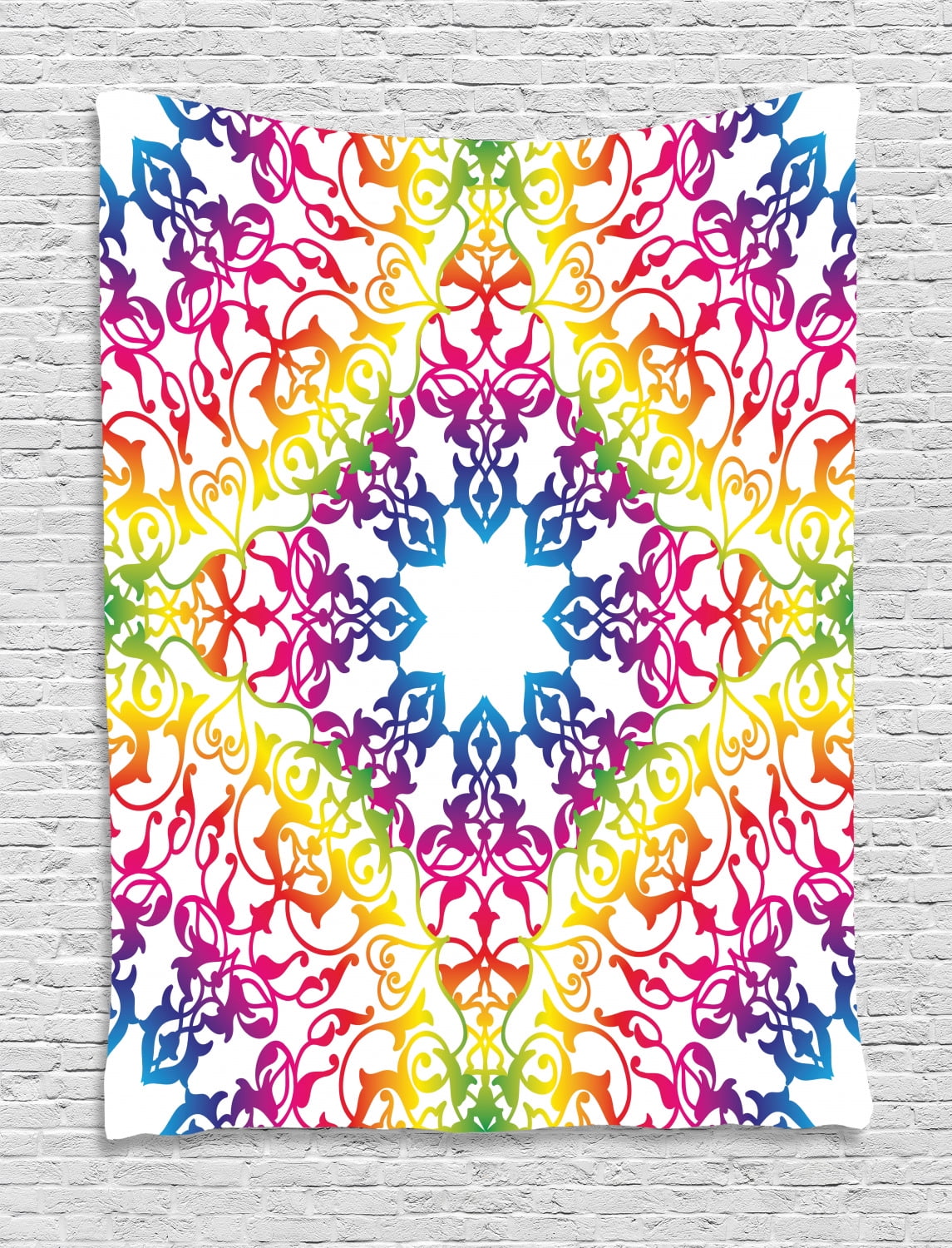 India Tapestry Abstract Ombre Vivid Rainbow Colored Lace Mandala