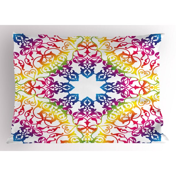 Ethnic Pillow Sham Abstract Ombre Vivid Rainbow Colored Lace