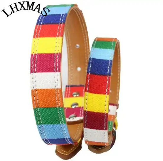 Leather Dog Collar Pu Leather Colorful Rainbow Adjustable Pet