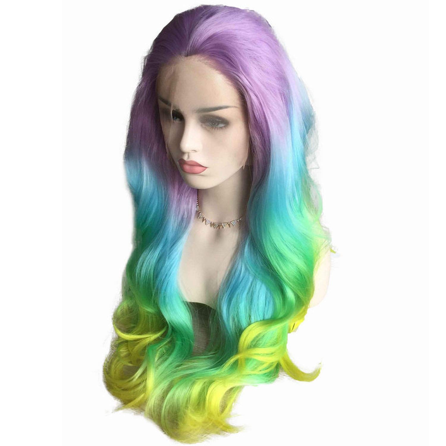 Amazon Com Rainbow Color Heat Resistant Fiber Wigs Light Purple