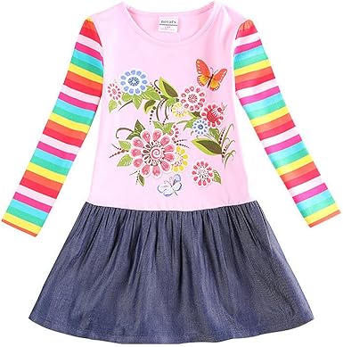 Amazon Com Little Girls Rainbow Dress Flora Casual Denim Lace