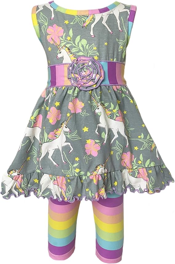 Annloren Little Girls Unicorns Rainbow Dress Leggings Toddler