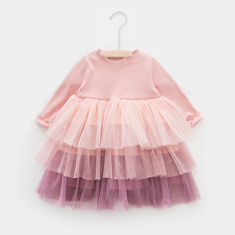 2020 Long Sleeve Baby Rainbow Dress Online Knee Length Tulle