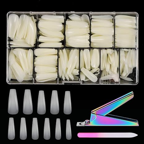 Gorvell 500pcs 10 Sizes Long Ballerina False Nails Set Full Cover