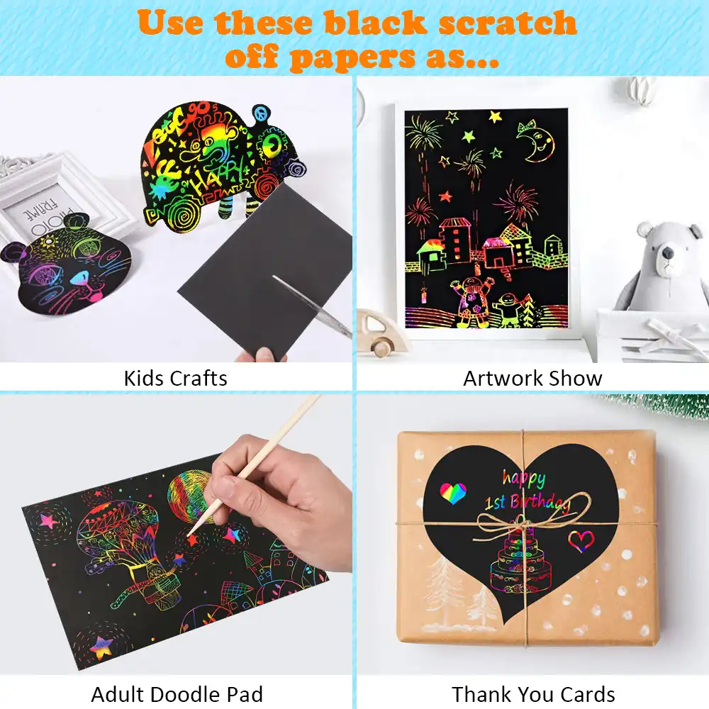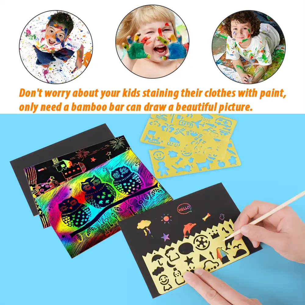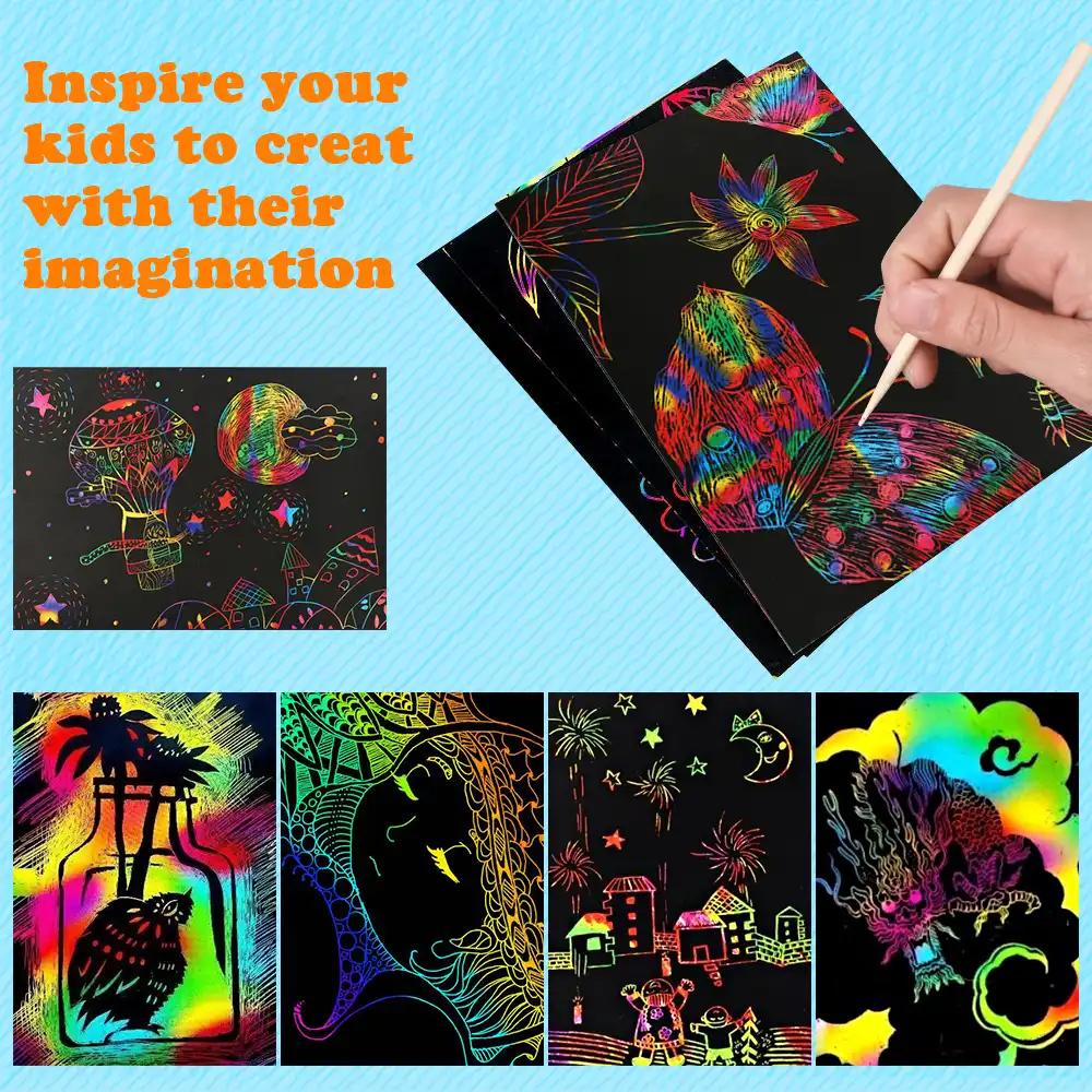 New Scratch Art Set 50 Piece Rainbow Magic Scratch Paper For Kids