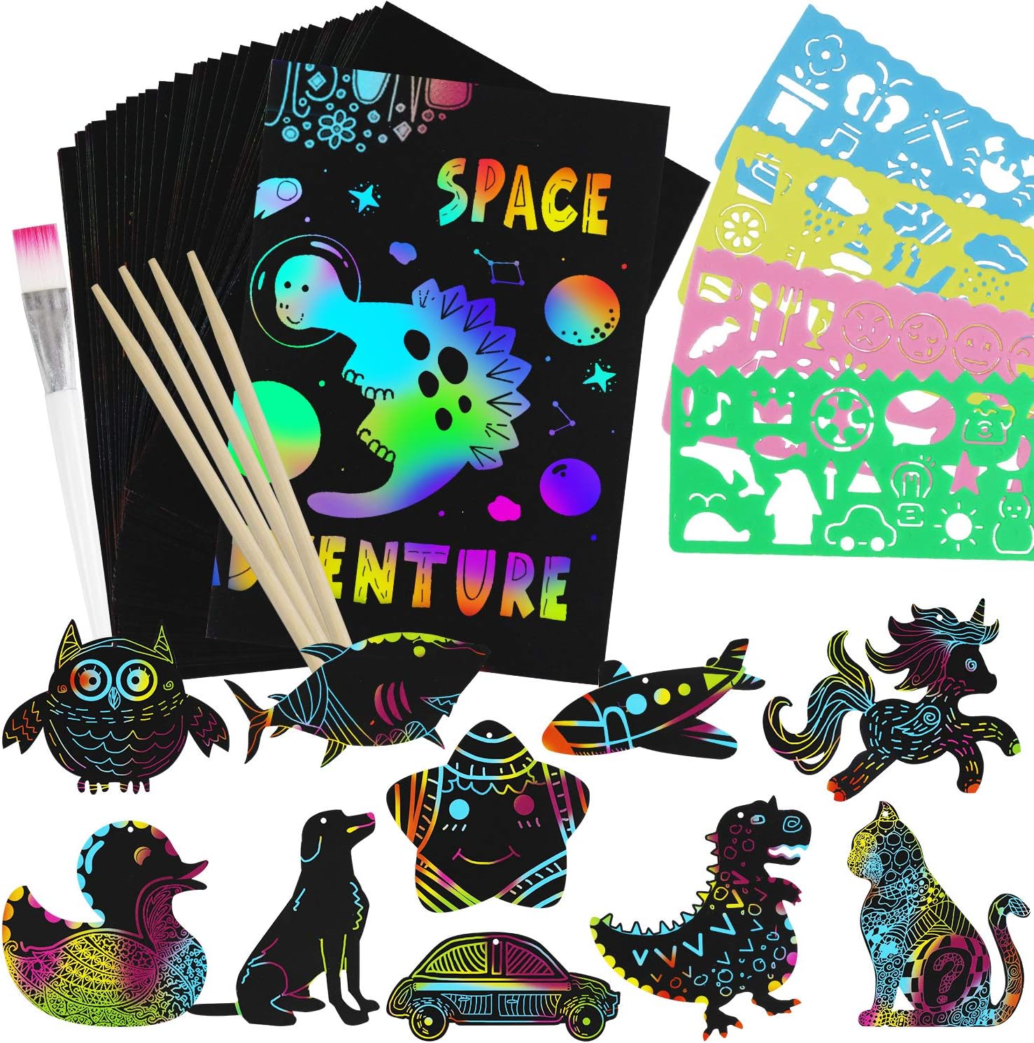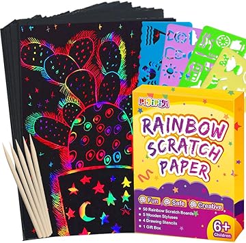 Amazon Com Casaon Scratch Paper Art Set For Kids 50pcs Rainbow