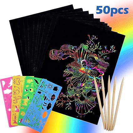 Amazon Scratch Art Set 50 Pce Rainbow Magic Scratch Paper For