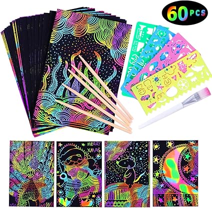 Amazon Com Max Fun 60pcs Scratch Art Set Rainbow Magic Scratch