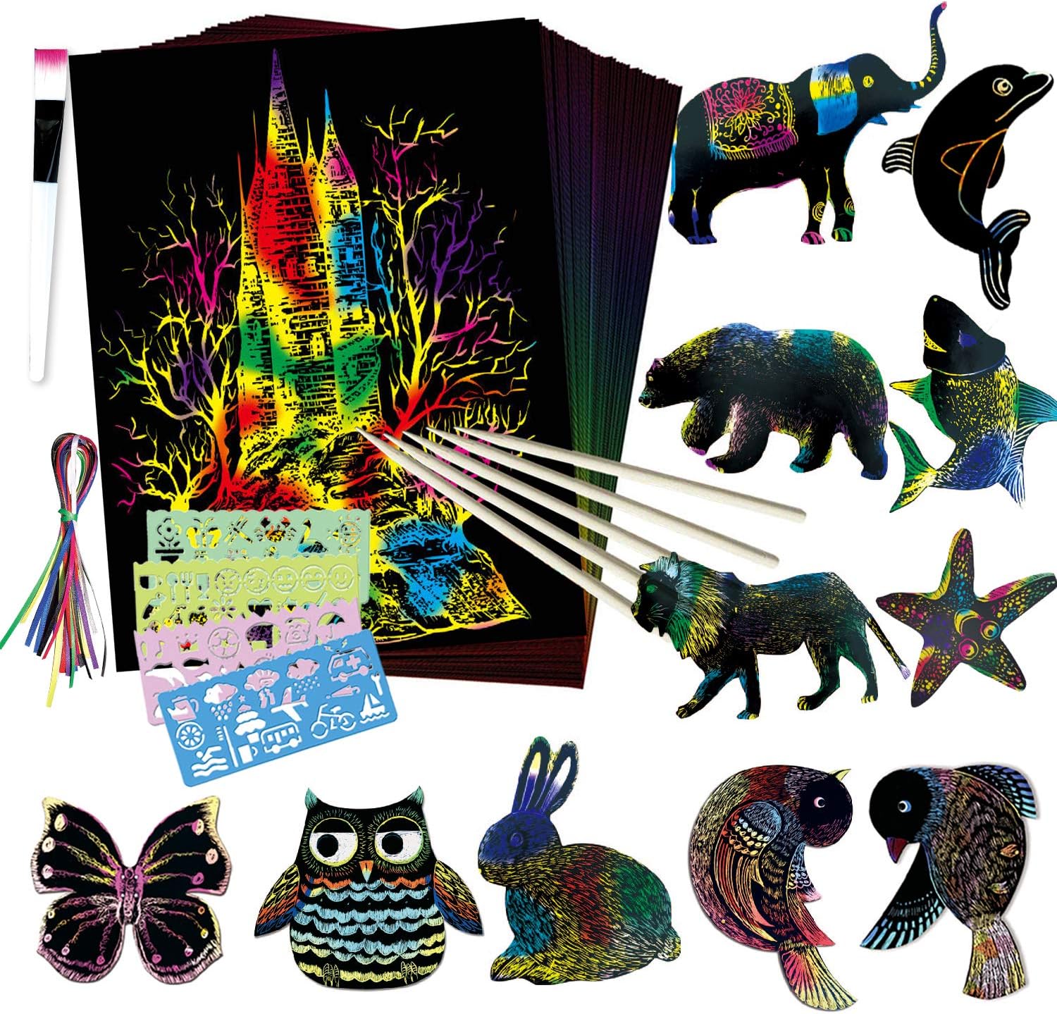 Amazon Com Scratch Paper Art Set For Kids 107 Pcs Rainbow Magic