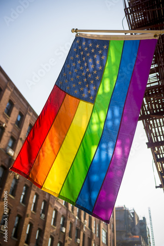 American Flag With Stars And Gay Pride Rainbow Stripes Hanging