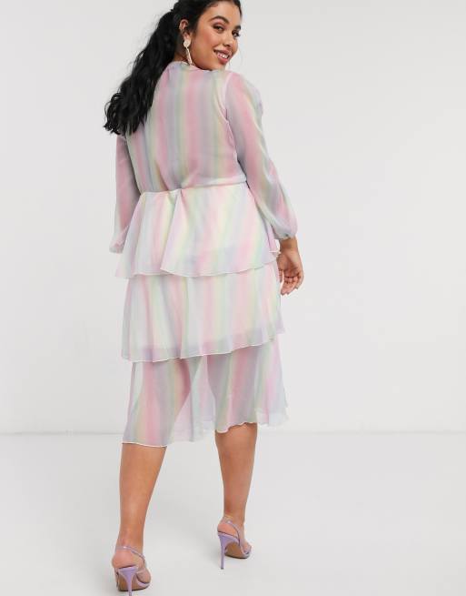 Outrageous Fortune Plus Plunge Front Tiered Midi Dress In Pastel