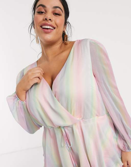 Plus Size Sugar Thrillz Pastel Ruched Mini Slip Dress Rainbow