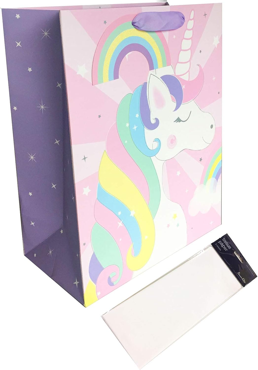 Birthday Gift Bag Large Unicorn Girls Kids Her Pastel Pink Glitter